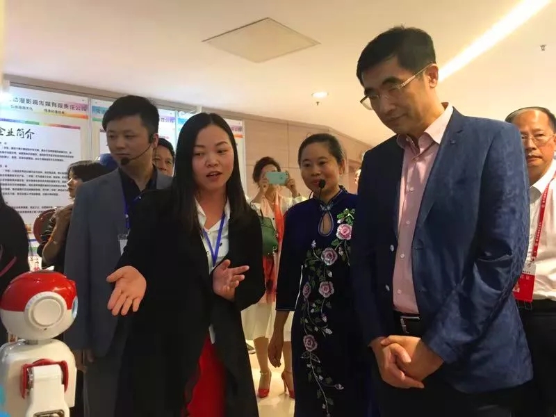 开幕式当天,湖南省政协副主席张大方、湖南省委宣传部副部长杨金鸢、湖南省文化厅党组书记、厅长禹新荣等领导一行莅临现场,并在巡展中重点关注了我司智能机器人和学习机等衍生产品,对我司创新发展工作给予了充分肯定。