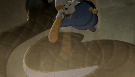 一片粉红,花瓣满天飞舞,本是仙境一样的地方却被猪无戒的挑衅打破,蓝兔宫主为了正义而战,上演了一场善与恶的战歌,倘若大屏收看估计会忍不住高呼“打得好”。