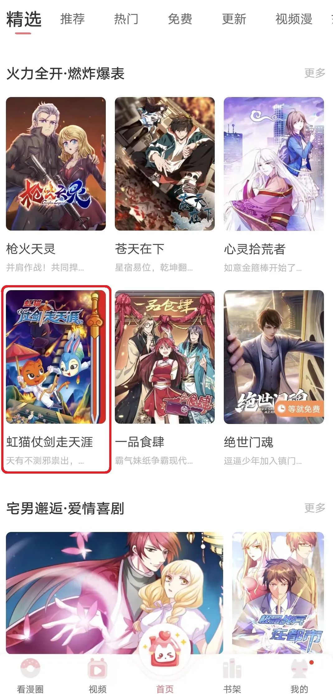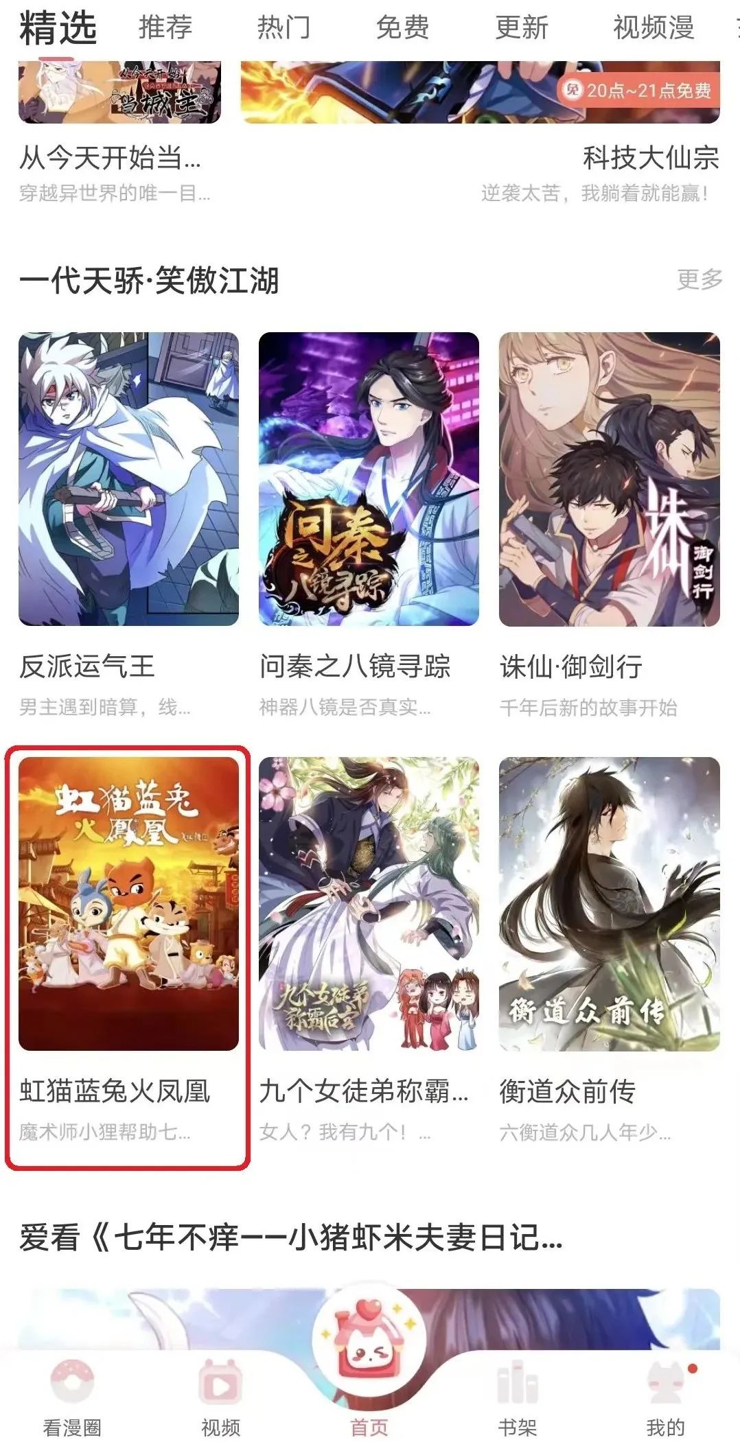 看漫APP首页“一代天骄·笑傲江湖” 栏目